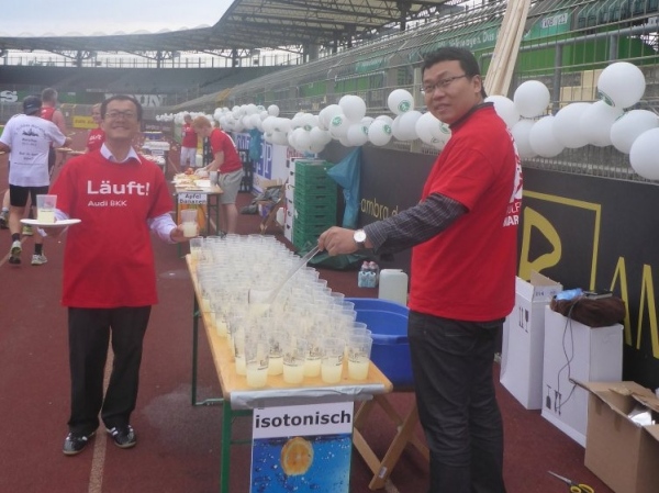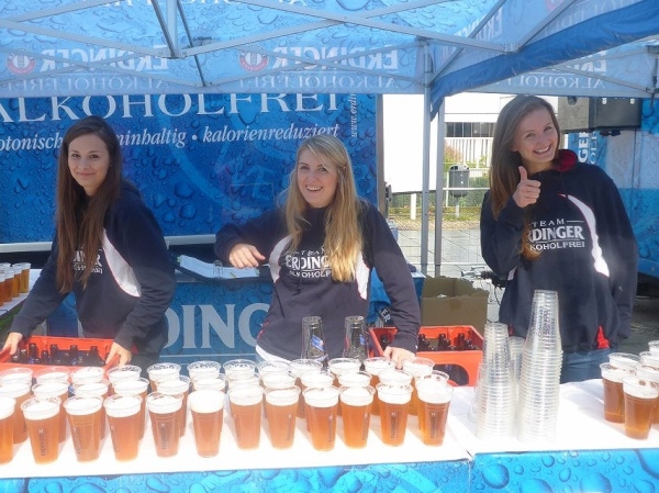 Gegen 14 Uhr 49 liefen dann beide Hand in Hand an mir vorbei und durch die Ziellinie. Nach einer kurzen Verschnaufpause holten sich die Beiden das diesjährige Finisher-Geschenk für die 10km-Läufer ab: Ein hübsches Käppi mit dem Logo des Wolfsburg Marathon.