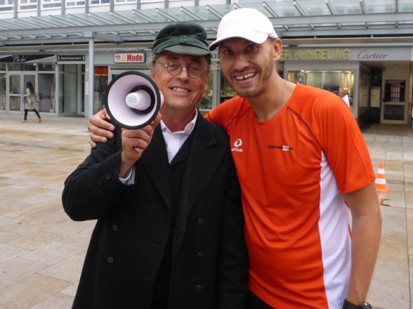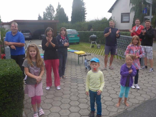 Den Perkussionsgruppen sowie dem Megafon-Mann ließ der Regen ebenfalls kalt. „Wir sehen uns 2014“, schallte er mir noch hinterher. Im Wohngebiet von Hellwinkel hatten die Anwohner den Spaß an der Veranstaltung ebenfalls nicht verloren. „Schau sich einer mal den Läufer an, der macht ja sogar Fotos! Hey Junge, komm ma rüber, kriegste ne Bratwurst!“ Grillen im Regen, jawoll, so und nicht anders.