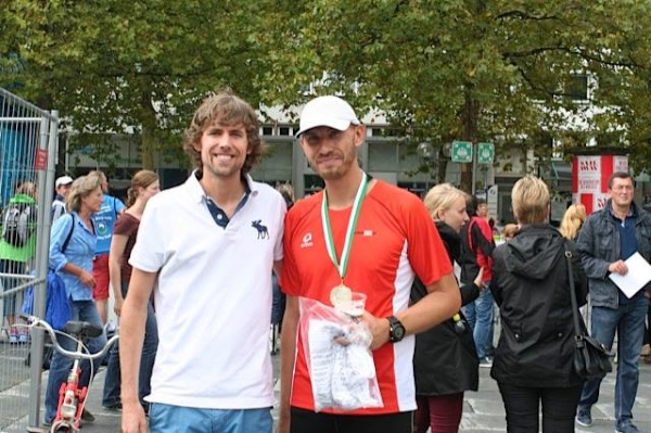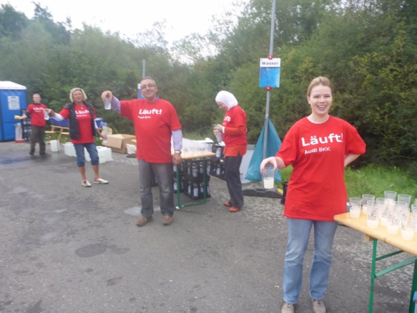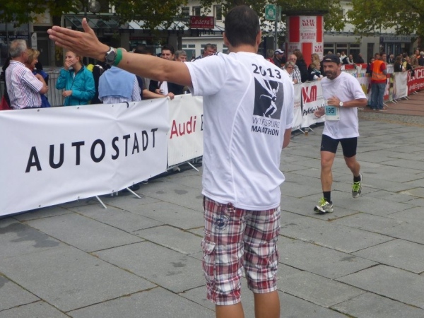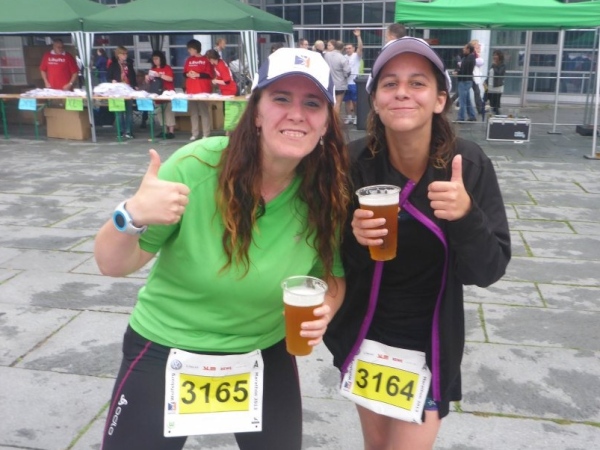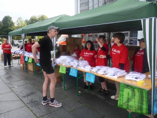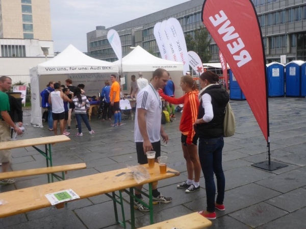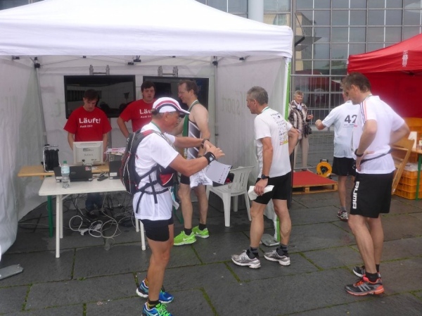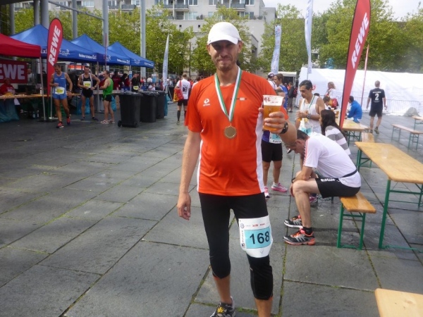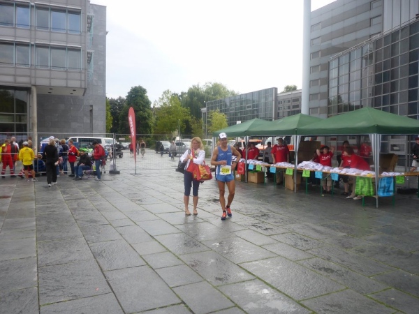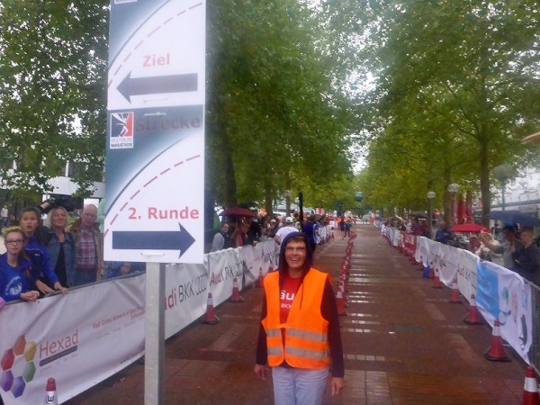 Während der letzten zehn Kilometer hatte ich das Tempo angezogen und erreichte nach vier Stunden völlig durchnässt den Zielbereich. An den Ständen der Zielverpflegung gönnte ich mir eine kurze Pause, traf nochmals Björn, holte mein Finisher-Shirt sowie Medaille ab, lief dann zum Auto, zog mich dort um und dann ging es wieder zurück. Ich wollte den Zieleinlauf meiner Frau Nicole sowie Debbie auf keinen Fall verpassen.