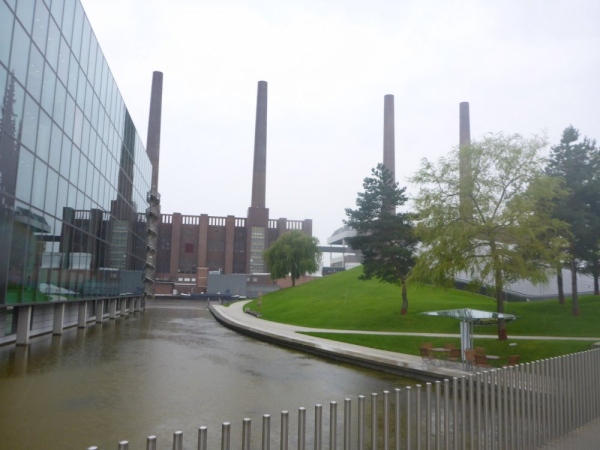 Ich verlasse die Halle auf der anderen Seite und betrete die 25 Hektar große künstliche Teich-, Lagunen- und Hügellandschaft, dahinter folgt das Werksgelände. Ich erhasche nur einen flüchtigen Blick auf zwei gläserne Zylinder, je 20 Etagen hoch, gigantische Schaufenster, in denen bis zu 800 bestellte Neuwagen Platz fanden. Der VW-Erlebnispark war nix für einen schnellen Durchlauf…daher freute ich mich bereits auf die zweite Runde.