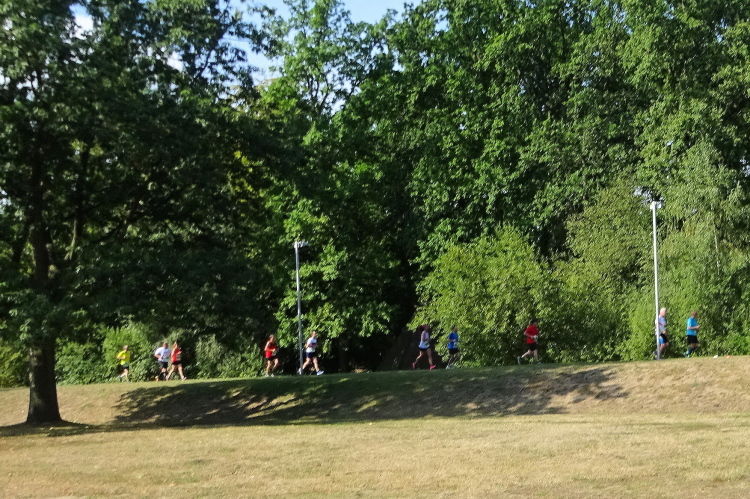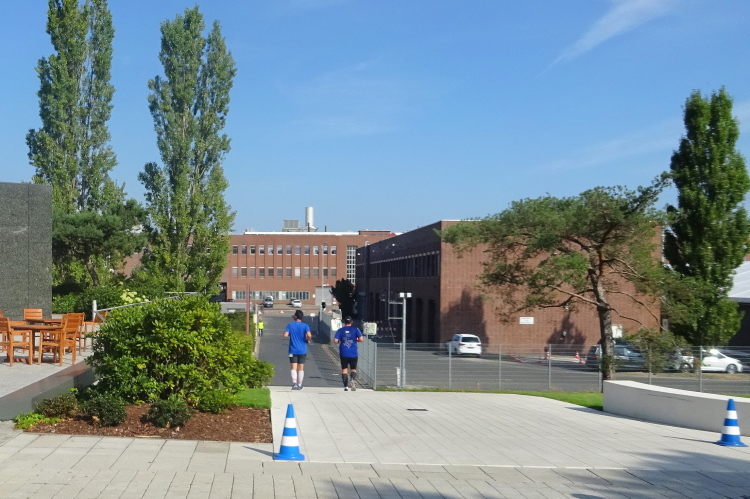 Wir laufen zunächst auf der Porschestraße nach Süden. In der Nähe befindet sich das 1983 eröffnete Planetarium mit einer Innenkuppel von 15 m. Den Besuchern wird hier ein Himmelspanorama mit über 9000 verschiedenen Sternen geboten. Ebenfalls nicht weit weg, am Fuß des Klieversbergs am Südende der Stadtmitte von Wolfsburg, befindet sich der Congress Park. Der Kollege mit dem orthopädischen Knieschutz (später erfahre ich, es ist Mike, ein nur mir nicht bekannter extremer Ultraläufer) hatscht mir zusehends davon. Hinter mir sind vielleicht noch ein halbes Dutzend Nachzügler. Mal sehen, wie lange ich sie in Schach halten kann.