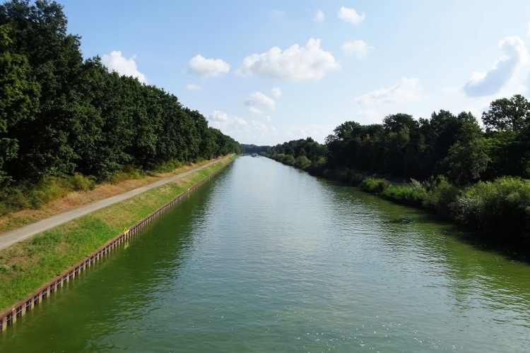 Am Rückweg bleibe ich bei Dämmerungseintritt auf dem Rad- und Fußweg der bereits 1957 eröffneten Berliner Brücke stehen, die über den Mittellandkanal führt, der mit 325 km längsten künstlichen Wasserstraße Deutschlands. Ein Stimmungsbild zur Erinnerung an meinen kurzen Wolfsburgaufenthalt.