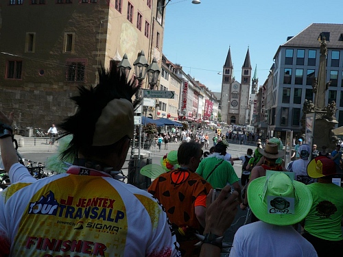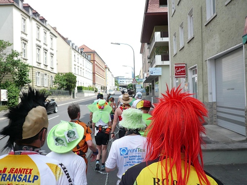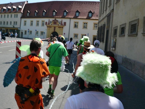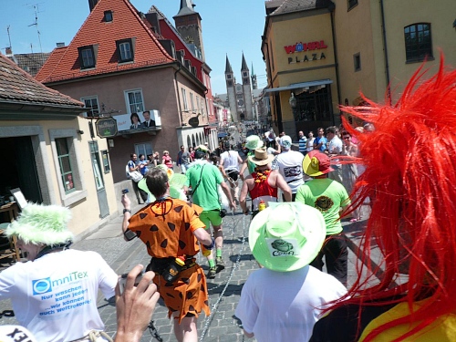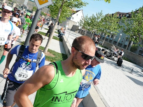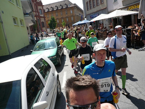 Zurück in der Altstadt, begleitet und versorgt uns ein Radfahrer. Ich glaube, dass der vom Veranstalter ist. Mittlerweile zählen wir die Kilometer rückwärts. Umkehren wäre jetzt wirklich blöd.