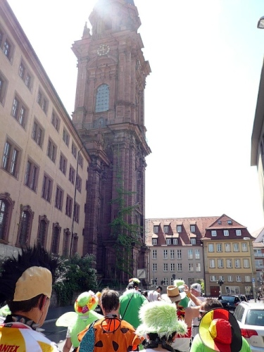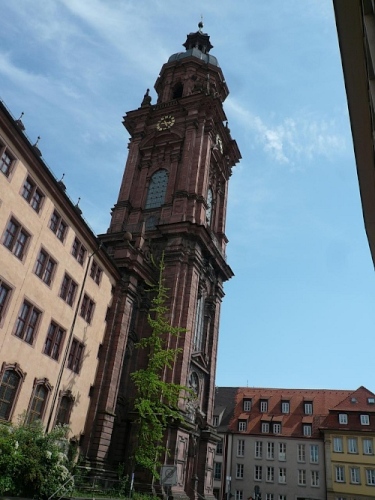 Stadtteil Frauenland, Kilometer 14: Nach dem Überqueren des Innenstadtringes häufen sich die Sehenswürdigkeiten. Es beginnt mit der Alten Universität und mit der Kirche St. Peter.