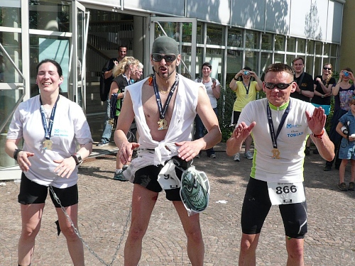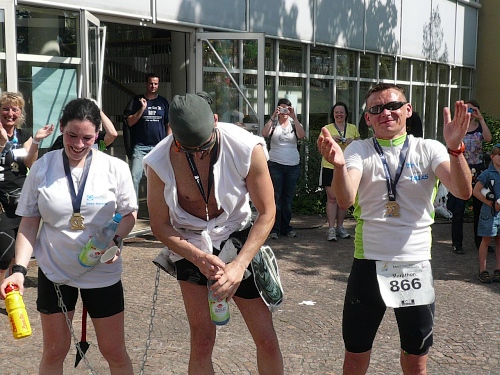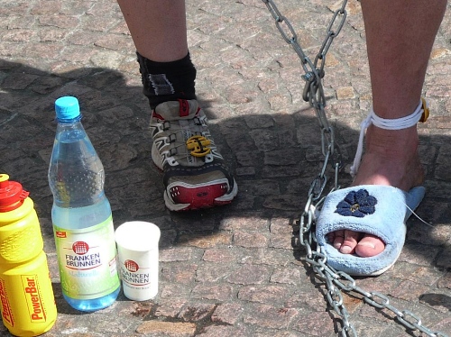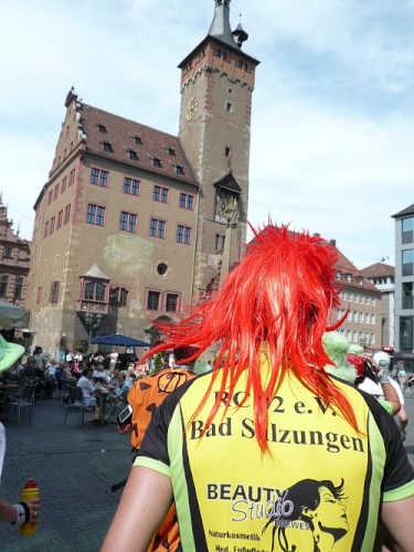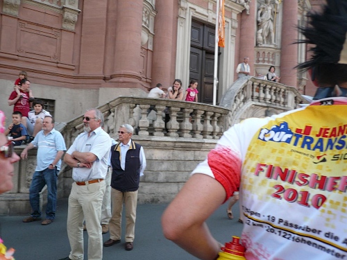 Im Untergeschoss des CCW haben die Würzburger für uns noch kurzerhand ein kleines Bufett mit Wasser, Schorle, Cola, Brezen, Melonen, Bananen, Weintrauben, Wurst, Käse und Semmeln aufgebaut. Und die Dusche können wir auch noch benützen. Danke Würzburg, danke dem Chef Günter Herrmann und seinen Helfern. Ich habe lange Zeit nicht an einen Erfolg geglaubt. Meine Hochachtung an alle für ihr Finish, besonders an die, die am meisen leiden mussten.