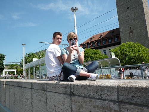 Dann dürfen wir auf der Balthasar-Neumann-Promenade flanieren, die Residenz zur Rechten. Die Residenz zählt zu den Hauptwerken des süddeutschen Barocks. Balthasar Neumann erbaute 1720 bis 1744 diesen großartigen Bau, der in der Liste des Weltkulturerbe der UNESCO steht. Ein Besuch wäre langsam für mich an der Zeit. Fotografieren ist heute nicht einfach. Alleine unterwegs könnte ich stehenbleiben, zoomen und mir mit einer Motivsuche Zeit lassen. Das ist heute nicht möglich.
