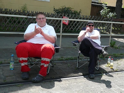 Eine großartige Hilfe für uns sind die Helfer an den V-Stellen: Obwohl schon aufgeräumt ist, tragen sie uns noch Wasser, Cola und Bananen hinterher. Danke. Mittlerweile ist auch der beauftragte Anwalt an unserer Seite und hilft mitunter beim Orientieren. Ein positives Zeichen!