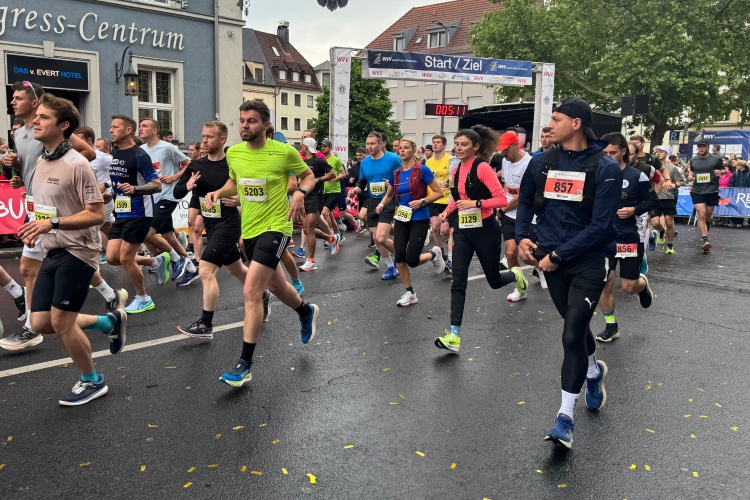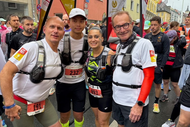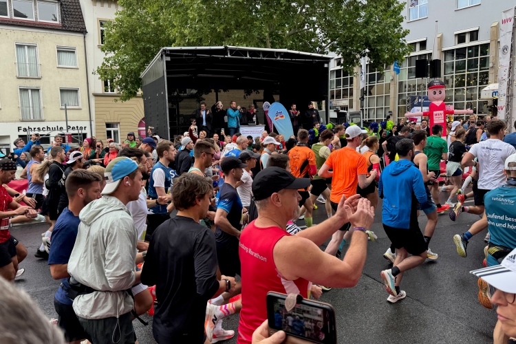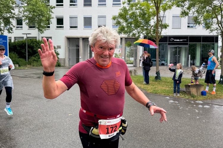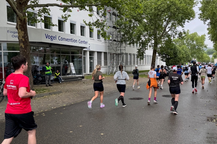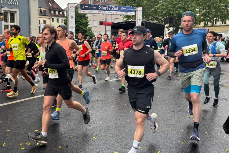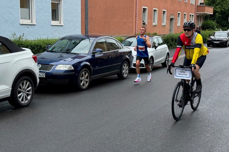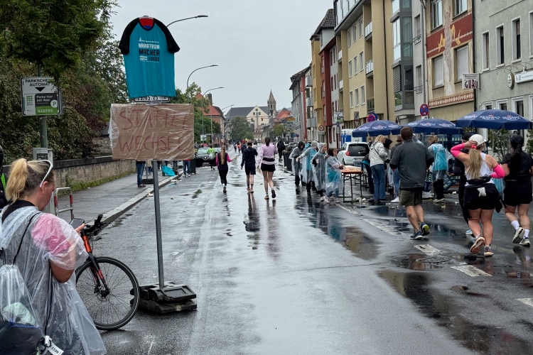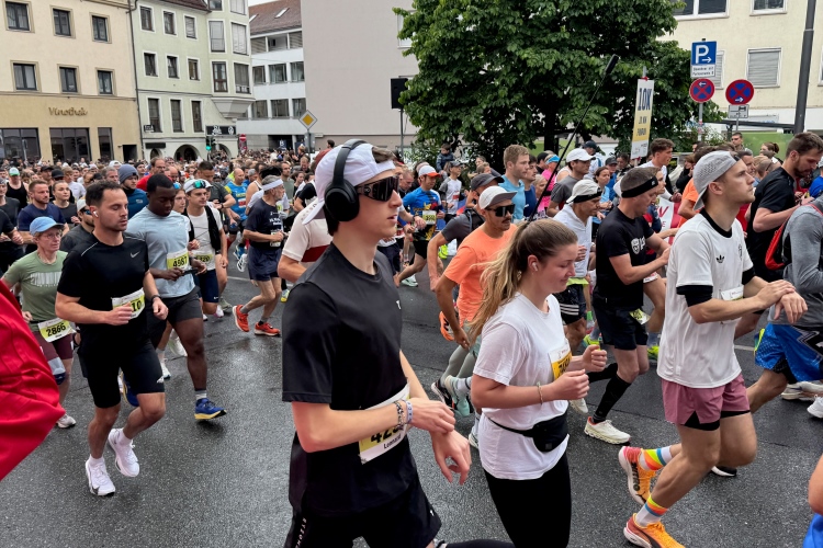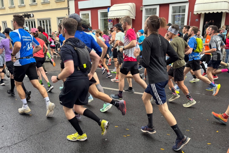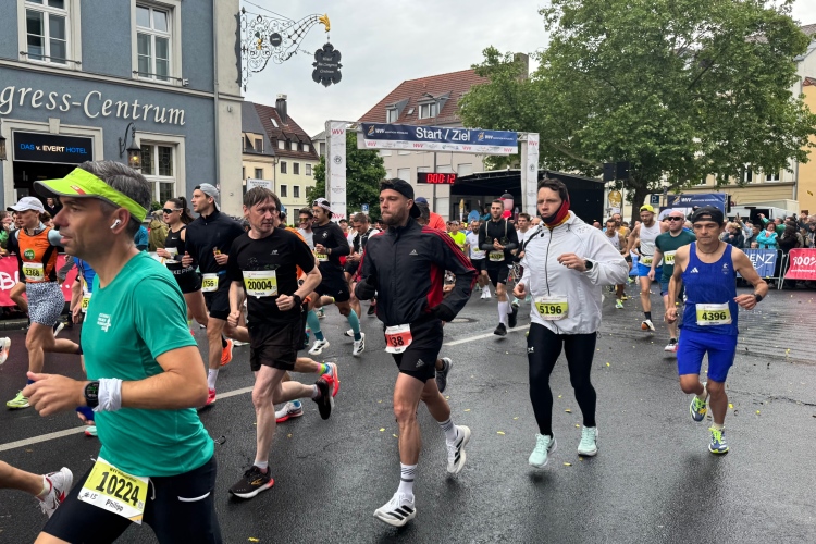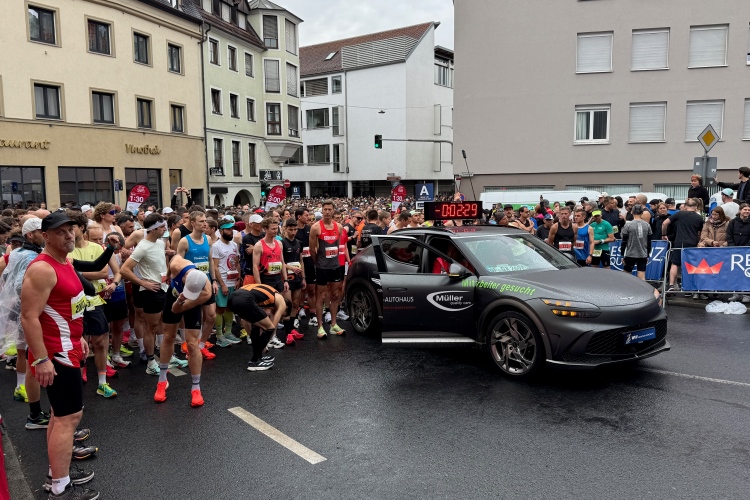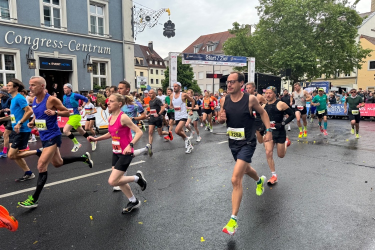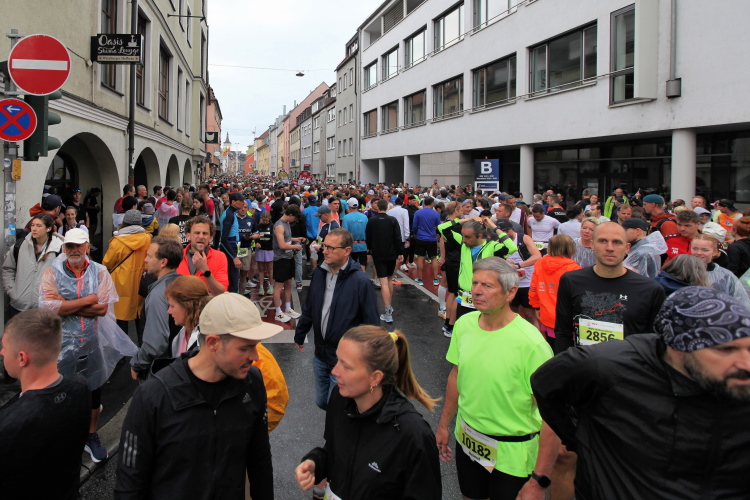Ich schaue am Startbogen vorbei. Martin Heilig, der frisch gewählte erste Grünen-Oberbürgermeister in Bayern, spricht das Grußwort. Das Elektro-Führungsfahrzeug eines chinesischen Herstellers verpasst fast seinen Einsatz, da der Fahrer noch letzte Anweisungen bekommt. Um 9:10 Uhr dann der Startschuss für den Marathon.