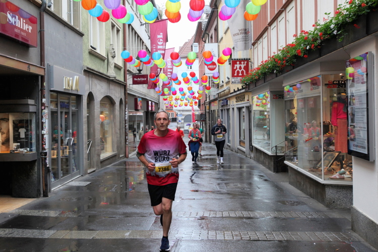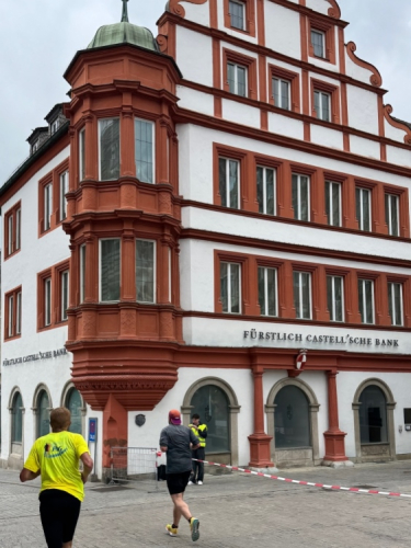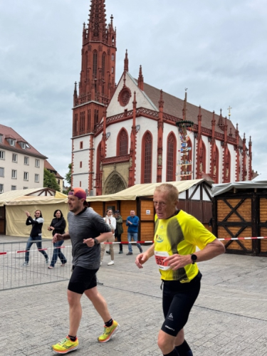 Ein abwechslungsreicher Zweirundenkurs durch Würzburg. 25 Actionpoints auf 21 Kilometern. Flach, bis auf einige Wellen bei Brücken. Viel Publikum besonders auf der ersten Runde. Auf der zweiten Runde sind Marathonis unter sich und haben einen besseren Überblick über die „Konkurrenz“. Außerdem kann man sich dann Dinge noch mal genauer ansehen, wie Heiko, ein Erstteilnehmer, uns im Ziel erklärte.