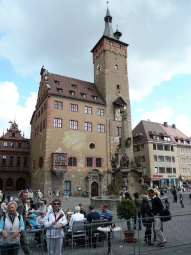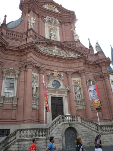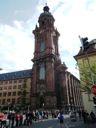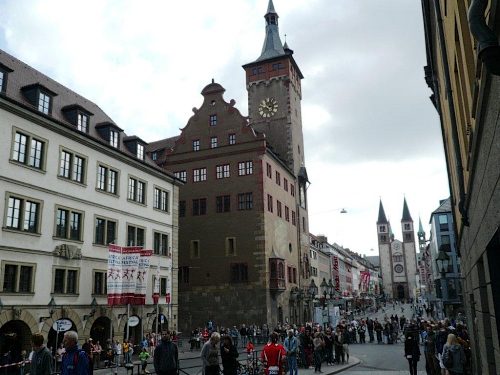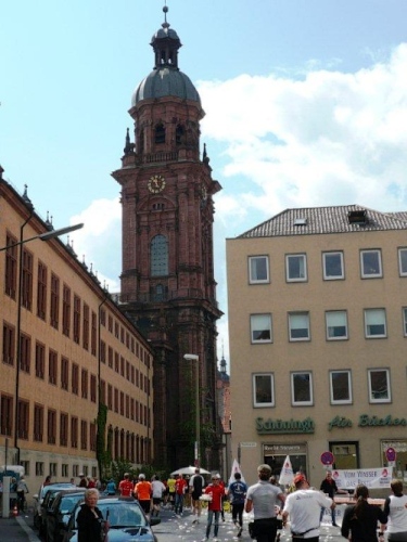 Die nächste Sehenswürdigkeit ist die Kirche des Stifts Haug mit der mächtigen Kuppel, die als erster großer Barockbau Frankens gilt. Eine kleine Schlaufe führt danach in Richtung Bahnhof und wieder zurück zur Altstadt. Der nächste, mehr historische als architektonische Fixpunkt – das Stiftungshauptgebäude wurde 1945 fast vollständig zerstört – ist das von Fürstbischof Julius Echter von Mespelbrunn gestiftete und nach ihm benannte Spital. Die dem Spital gehörenden 163 ha Weinberge – damit gehört es zu den drei größten Weingütern Würzburgs - werden nicht zur Herstellung von Medizin genutzt (darüber kann man sich streiten – einverstanden), sondern stammen aus der Bewirtschaftung der bedeutenden Einkünfte und Güter, welche Julius Echter der Stiftung zur Finanzierung ihrer Aufgaben übereignet hat. Das Juliusspital war zugleich Altenheim, Waisenhaus mit Schule und Pilgerherberge und als Krankenhaus eng mit der medizinischen Fakultät der Würzburger Universität verbunden.