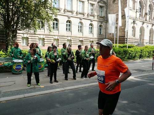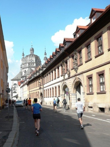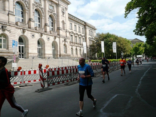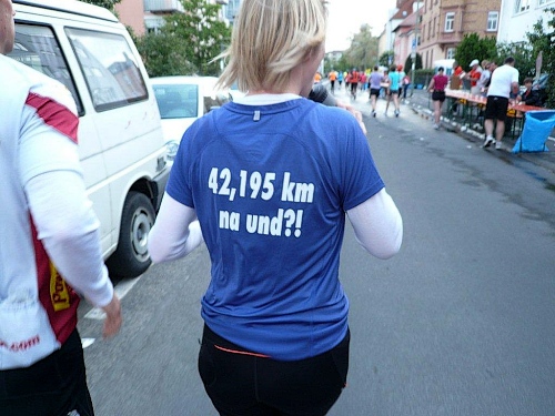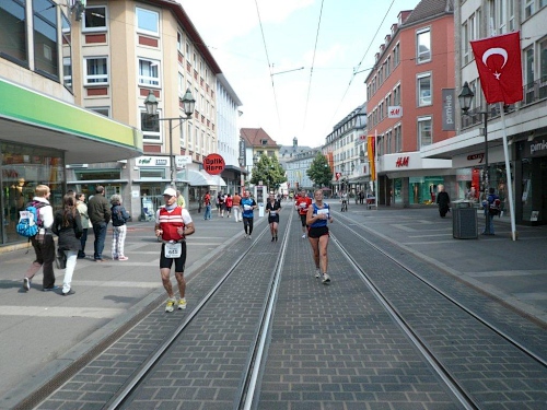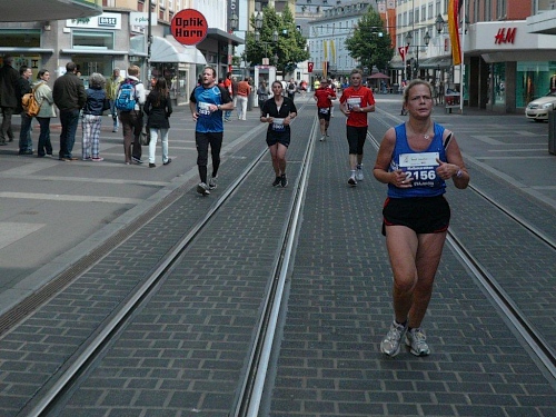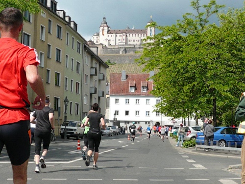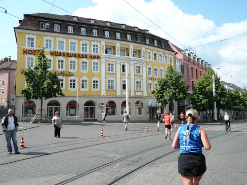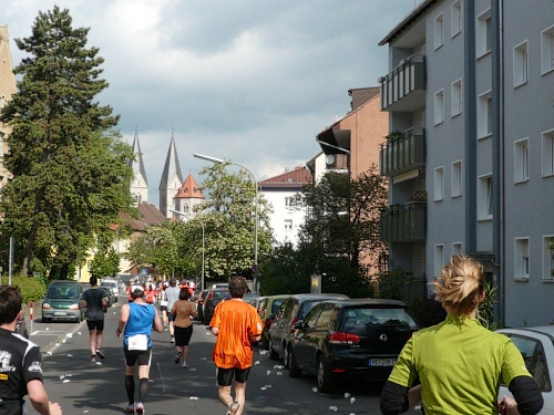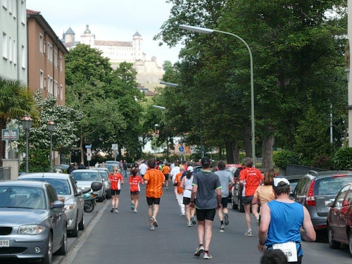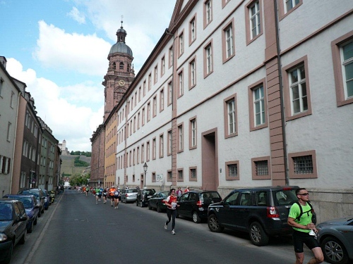 Die Strecke durch das weitere Wohngebiet von Sanderau ist abwechslungsreich, immer wieder sind als Angehörige erkenn- und hörbare Zuschauer zugegen. Der eigentlich sanfte Anstieg nach und durch Frauenland hängt ein bisschen an. Frauenland ist nichts für Memmen. Das Name dieser bevorzugten Wohngegend rührt daher, dass bis Anfang 19. Jahrhundert dieses Land fast ausschließlich im Besitz der Frauenklöster war.