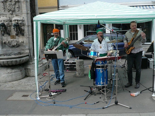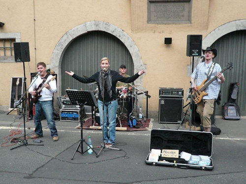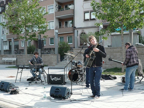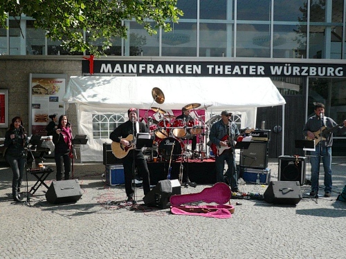 So viel Bildung heute, wenn mir das nur nicht schwer aufliegt… Und wenn du nicht zur Kultur gehst, dann kommt sie zu dir. So oder ähnlich kommt es mir beim Mainfranken Theater vor, vor dem eine weitere Band aufspielt.