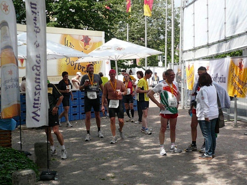 Nach einer warmen Dusche im Duschzelt muss ich mich bereits auf den langen Heimweg machen. Schade. Gerne würde ich es mir in Würzburg noch etwas schmecken lassen. Die Organisatoren in Würzburg versehen ihren Marathon mit allen Zutaten, die eine gute Grundlage für ein leckeres Laufmenu bilden, und verstehen es, dieses gut abzuschmecken. Nicht nur mit Bleifreiem und Brezeln (nebst anderen Getränken und Früchten) als Zielverpflegung.