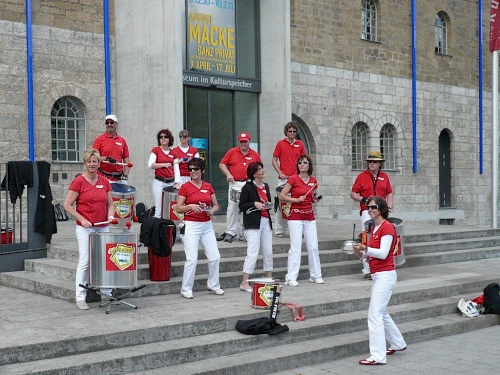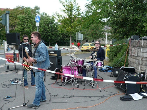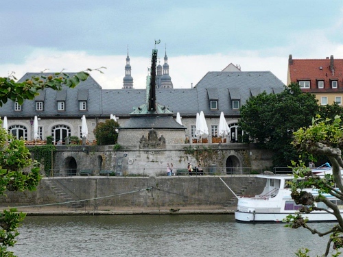 Die Jungs am anderen Brückenkopf greifen immer noch kräftig in die Seiten und pusten mächtig Dampf aus ihren Verstärkern. Ordentlich mit Dampf unterwegs sind auch Mirjam und die beiden Daniel auf ihrem ersten Marathon. Ich komme mit ihnen ins Gespräch und habe das Glück, dass sie aus Würzburg sind und mir bei meinem Streifzug noch ein paar Zusatzinformationen liefern können. Dank Ihnen kann ich noch ein weiteres Wahrzeichen fotografieren, den Alten Kranen. Über 300 Jahre ist es her, dass ihn der Sohn Balthasar Neumanns erbaut hat und er blieb eines der wenigen Bauwerke, welche die Bombardierungen gegen Ende des zweiten Weltkriegs ohne nennenswerte Schäden überstanden haben.