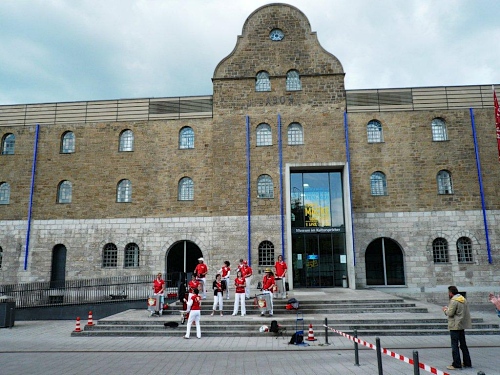 Dem ist nicht ganz so. Die Überleitung in die zweite Runde geht unter der Friedensbrücke durch und führt dadurch direkt vor dem Kulturspeicher durch. Dieser ehemalige Getreidespeicher am Alten Hafen war auf der ersten Runde von der Straße aus nicht so gut zu sehen. Fast hundert Jahre nach seiner Errichtung für die bayrischen Staatshäfen wurde er für seine neue Bestimmung umgebaut und beherbergt ein Museum, ein Theater und eine Tanzwerkstatt. Architektur, für welche ich ein besonderes Flair habe.