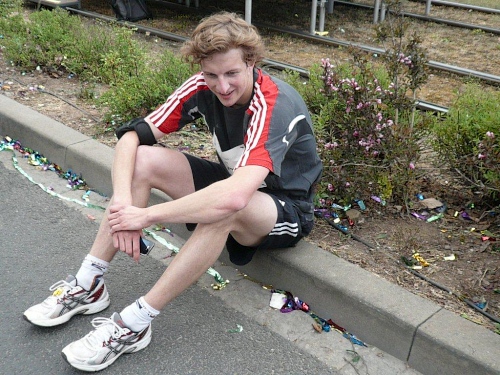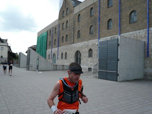 Mir scheinen die Kilometer auch wieder ihrer eigentlichen Länge zu entsprechen und es macht nicht den Anschein, dass mein Übermut in Sachen Schuhwahl bestraft würde. Nach meiner gelungen Premiere mit dem neuen Straßenschuh gestern, bin ich heute daran, das verschärfte Modell zu testen. Mit 23 Gramm weniger am Fuß und nur noch 6mm Sprengung bin ich luftig unterwegs. Ich staune, mit welcher Leichtigkeit ich beim zweiten Marathon innerhalb von 24 Stunden einen Fuß vor den anderen setze.