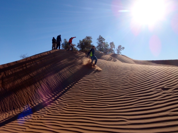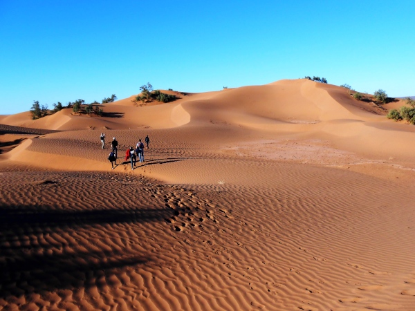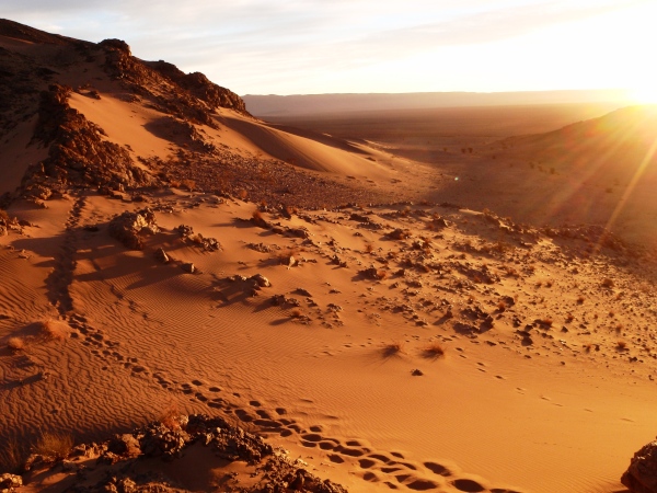 Abgesehen von der Verletzung erhole ich mich schnell. Und so kann ich auch die weiteren Reisetage genießen: erst den Ausflug mit Übernachtung im Zeltlager in der Mhamid-Wüste, mit Sonnenunter- und –aufgang, dann die Silvester-Party an der Laufstrecke, mit nächtlichem Aufstieg auf den Bergsattel, um den unermesslichen Sternenhimmel zu genießen, und einem zweiten Aufstieg wenige Stunden später wieder auf den Bergsattel zum ersten Sonnenaufgang im neuen Jahr.