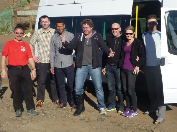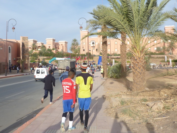 Europäische Läufer erkennt man an den Rennstrapsen, einige Marokkanerinnen laufen mit Schleier. Sehr viele Läufer sind dabei, die hier ihre Ausrüstung für den Marathon des Sables im April in Originalumgebung ausprobieren, so auch Thomas und Weking, der Belgier, den ich beim UTAT kennengelernt habe, und der kaum französisch spricht, da er in Chile aufgewachsen ist. Witzigerweise in dem Ort, in dem der Onkel von Bernd wohnt. Bernd ist mit Erika angereist, die heute den dritten Platz bei den Damen erreichen wird. Nachdem Gaby letztes Jahr den zweiten Platz gewann, ist wohl in 2014 das Siegertreppchen für Deutschland fällig. Bei den Männern bleibt alles wie immer: Hammou Moudouij (2:32) wird zum vierten Mal in Folge gewinnen.