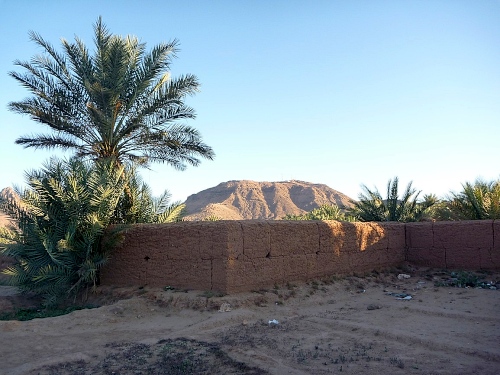 Nachmittags 2 Std Richtung Zagoraberg gelaufen, die Palmerie ist der Hit. Kanäle und Lehmmauern bilden ein unglaubliches Labyrinth. Árbeiter grüßen laut mit „Shalam, ca va?“ Das Grundwasser drückt Salz wegen der starken Verdunstung nach oben. Dagegen hilft der Klee, der in Fruchtwechselfolge angebaut wird. Sonst ist zu dieser Jahreszeit nur Rosenkohl zu sehen.