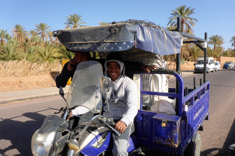 Acht Leute sind wir diesmal, das passt in einen kleinen Transporter. Die Fahrt in die Sahara dauert doppelt so lang, wie der Flug: 9 Stunden. Die Erneuerung der N9 über den Hohen Atlas wurde vor 2 Jahren eingestellt: Corona. Wieder mal krebsen wir durch die unzähligen Absperrungen.
