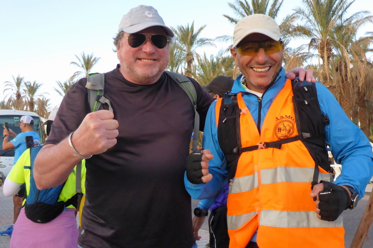 Sein Bruder Mohamad hat 5mal den MdS gewonnen, er leitet heute irgendwo im Süden einen Lauf. Rachid Elmorabity, 8mal den MdS gewonnen, läuft gerade in Jordanien. Wir beziehen unsere Unterkunft, unsere Startnummern liegen schon bereit, keine für mich, ich kann nicht laufen.