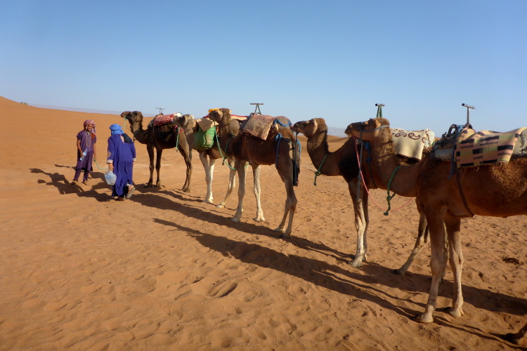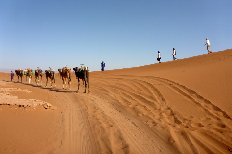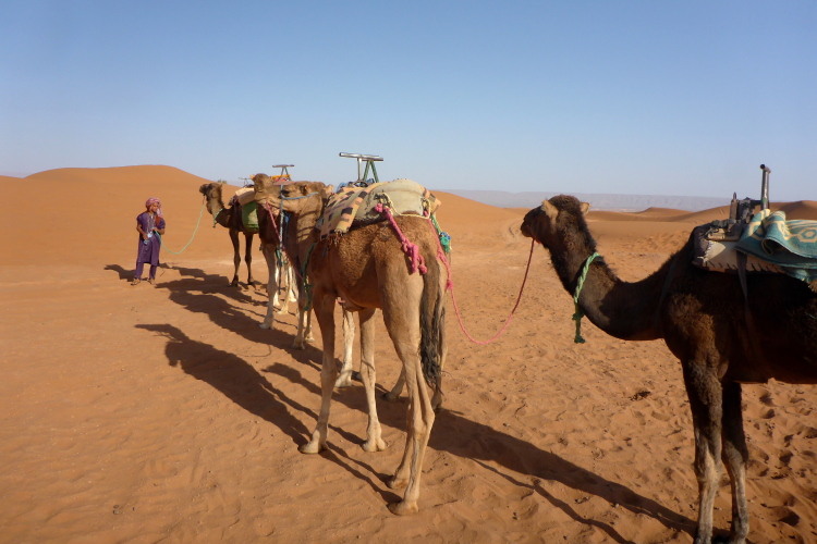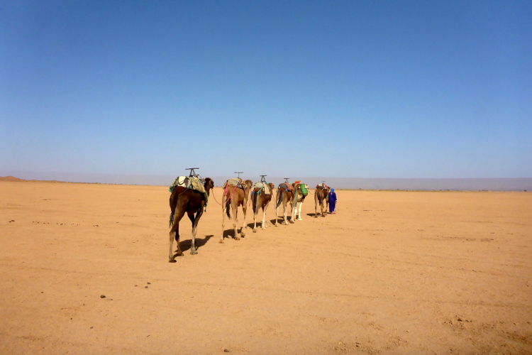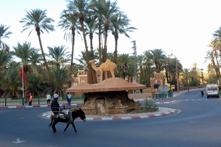 Die 52 Kilometer sind nicht willkürlich gewählt: Hier in Zagora hängt das Hinweisschild: „52 Tage nach Timbuktu.“, zumindest die Replik, das Original hängt im Museum. Hier ging die Karawanenstraße Goldküste-Mittelmeer durch. 52 Tage bedeutet 2100 Kilometer, da ein Kamel maximal 40 Kilometer am Tag laufen kann.