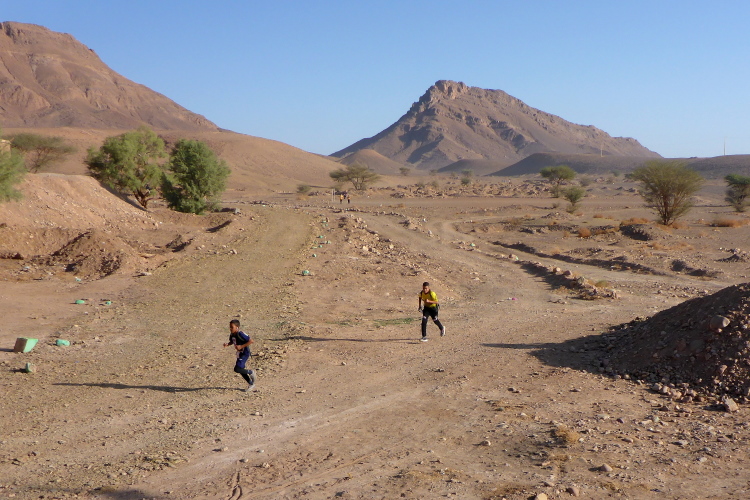 Zunächst fahren wir die Strecke der 10 Kilometer-Läufer ab. Auffallend sind die minderjährigen Jungs, die mit wunderbarem Laufstil vorbeipreschen. Es sind Zöglinge von Lahcen Ahansal. Was aber in Marokko fehlt, ist ein Trainingscamp mit Schule für die Nachwuchsläufer, so wie in Iten in Kenia.