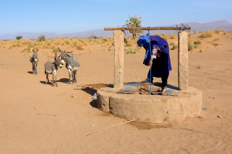 In Zagora, dem vorläufigen Endpunkt unserer Reise, entsteht das nächste Kraftwerk. Seitdem wir damals beim Utmes die Palmen gepflanzt hatten, ist der Grundwasserspiegel um 90 Meter gesunken. 600 Laster, gefüllt mit Wassermelonen, queren pro Saison die 500 km lange Strecke über den Hohen Atlas. Unsere Utmes Palmen beim Camp Ahansal sind nicht mehr.