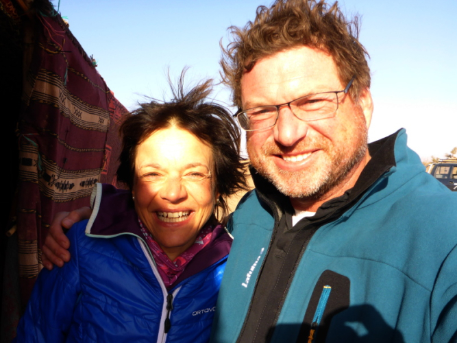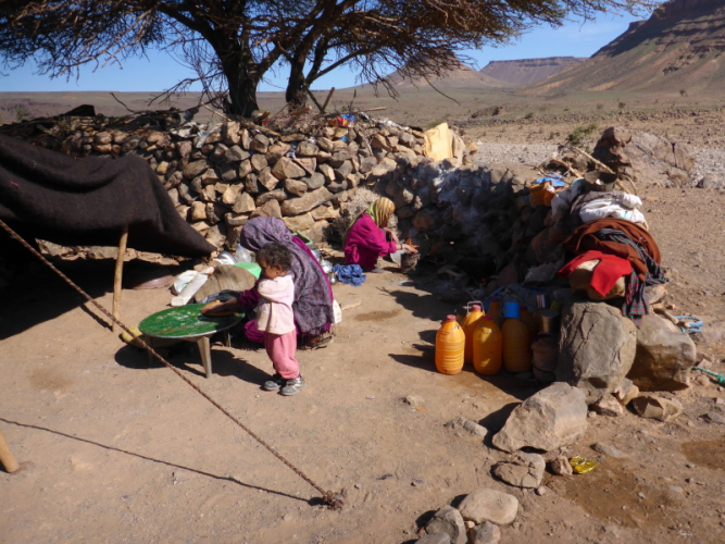 Wenige Kilometer weiter besuchen wir dann eine Nomadenfamilie, die uns freundlich aufnimmt. Gleich wird wieder Minztee zubereitet und leckeres Fladenbrot und Obst gereicht. Nach dieser kurzweiligen Stärkung geht´s auch gleich schon wieder weiter.