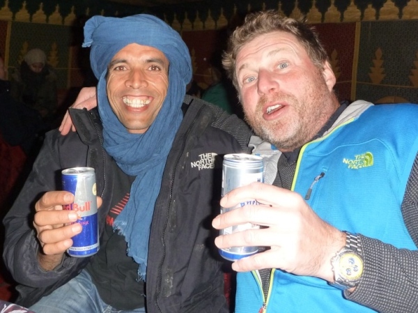Vom Stadtrand kommt eine Gruppe Trommler, der kräftige Klang übertönt den Gesang der Berber. Wir sind Teil einer großartigen Läufernation, VIP´s inmitten der Wüste, gern gesehene Gäste und die Party geht los….