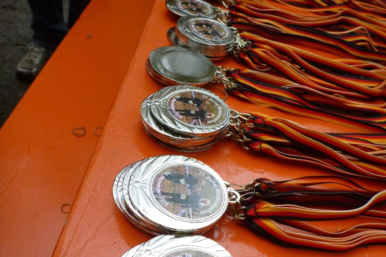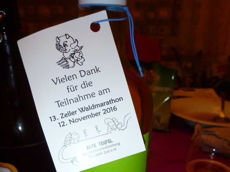 Im Ziel erhalte ich die Medaille von Huberts Madln umgehängt. Gleich daneben kann man sich verpflegen. Als Hopfenhaltiges kann man sich ein Malzbier einschenken lassen, a gscheits Bier, ja des hams net. Obwohl die Brauerei Göller auch Rauchbier, Weizenbock und Dunkles braut. Das letzter wurde 2016 mit dem World Beer Award ausgezeichnet. Hubert, frage deswegen beim Bräu an.
