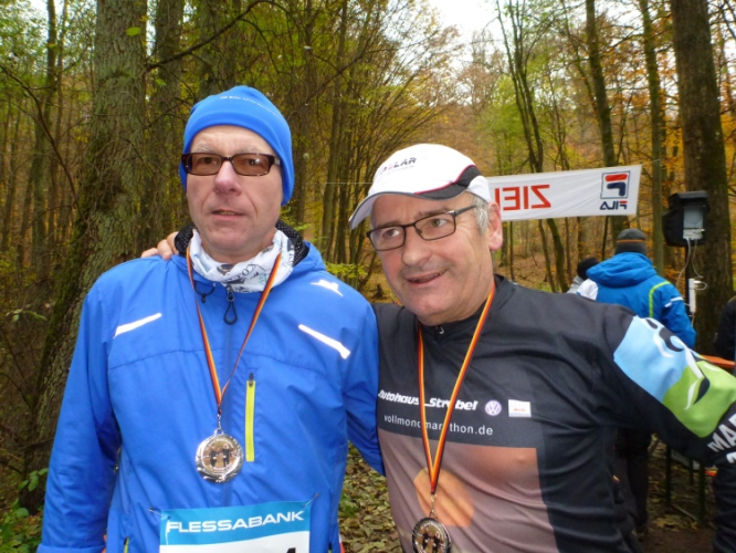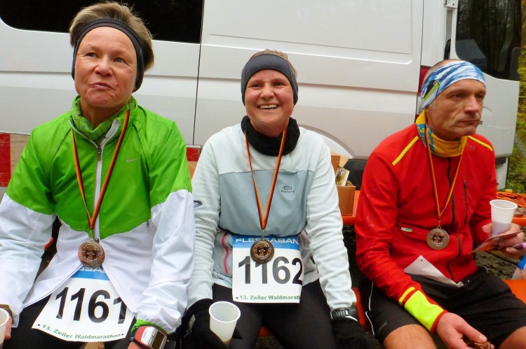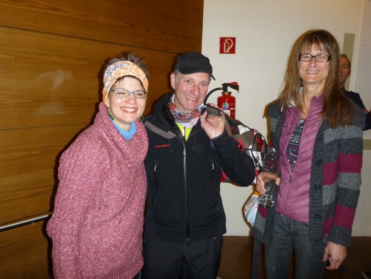 In wenigen Minuten ist sie wieder so redselig, wie ich sie kenne. Zur Halle lassen wir uns mit dem Shuttle kutschieren. Bei der Siegerehrung, wir sind da fast zu spät, werden gerade Eberhard und Angelika geehrt, er ist Erster der Klasse, sie Zweiter. Ja, und nach der Siegerehrung schicke ich Henny zu den Ergebnissen. Was sie nicht weiß, habe ich schon bei Kilometer 41 realisiert. Sie läuft auf der Hammerstrecke eine neue PB in 5.07 Stunden.