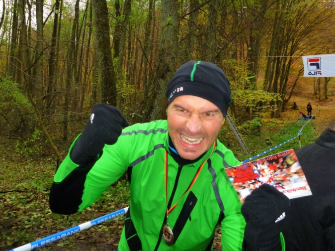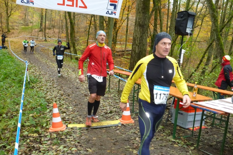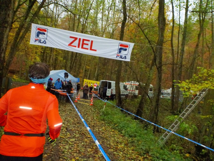 Die Kilometer fliegen vorbei, doch auf den letzten Einheiten wird es auch für mich schwer, obwohl ich noch alle Steigungen belaufen kann. Daniel Maag, Guylord Desurmont und Michael Schumann sind die letzten, die ich bergab noch hinter mir lassen kann. Und dann höre ich schon die Moderation vom Zielbereich. Es geht noch in einem Bogen hinunter und dann sehe ich das Zieltransparent. 4.16 Stunden sagt die Uhr. Ich bin beim Auswerten meiner Bilder beide Runden auf die Minute gleich schnell gelaufen und konnte mich dadurch im Klassement noch vorarbeiten.