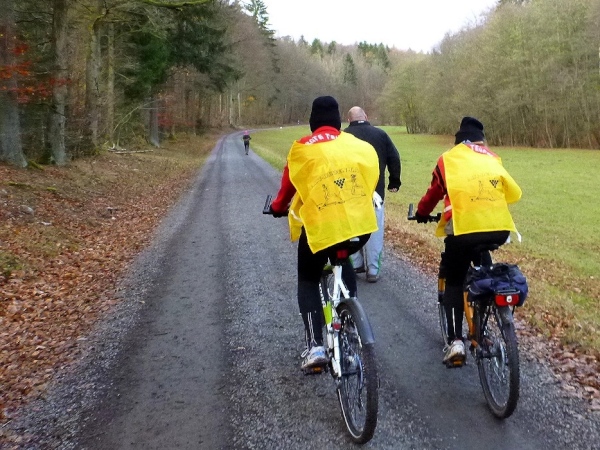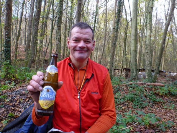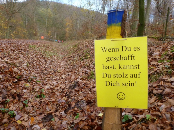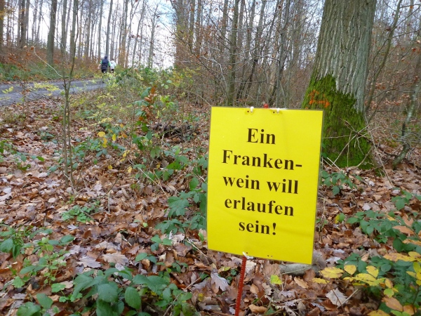 Mit Christoph Randt aus Hemsbach gehe ich die zweite Hälfte an. In der ersten habe ich meine Fotoarbeit fast gänzlich erledigt und will es nun einfach rollen lassen. Auf der langen Steigung am Anfang erspechte ich ein Quartett, auf das ich dann aufschließen kann, ich komme nämlich gut hinauf. „Ein Frankenwein will erlaufen sein“, eine frängische Weisheit, sie spornt mich weiter an.