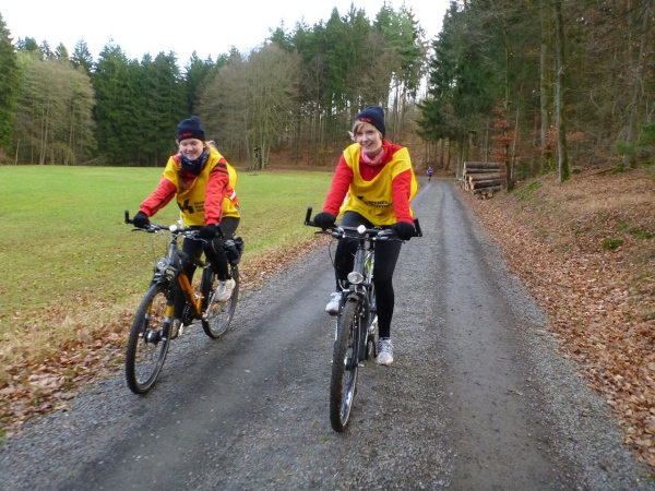 Kurz nach dem Stück über die Felder hat mich Theo Huhnholt vom LC Bayern, auch ein Marathonvielfraß wie ich, schon längst gesehen und schickt mich gleich mit einem „Hau rein“ weiter. Das Gelächter der beiden Schlussradlerinnen höre ich noch lange, weil ich sie nach ihrem Besen fragte.