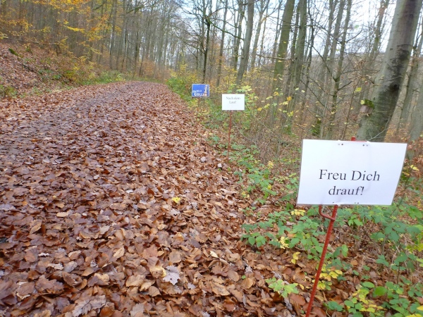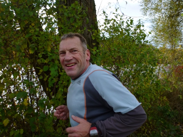 Auf Jochen Brosig, den Querläufer mit seinen Kommentaren zum läuferischen Geschehen, laufe ich am Bischofsheimer Weiher auf. So zwei, drei Kilometer tauschen wir uns aus, dann muss er an einer Steigung mir den Vortritt lassen. „So in Richtung 3.38, 3.40 wird es gehen“, seine Prognose. Michael Müller und Klaus-Dieter Hellwig sind weitere Marathonis, die meinen Parforce-Ritt nicht mitgehen können.