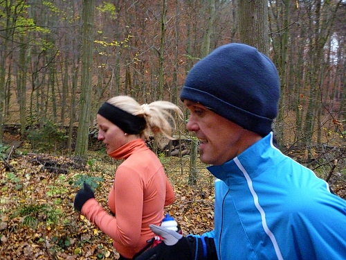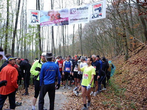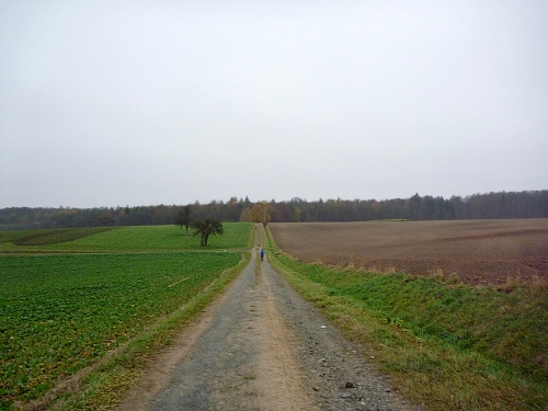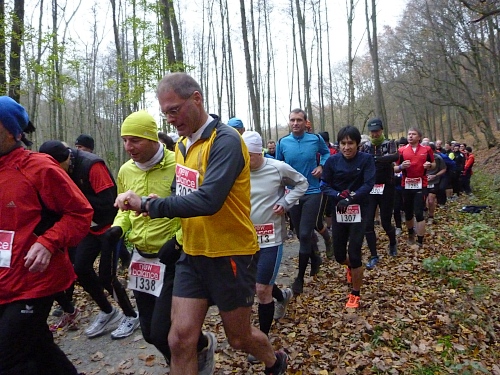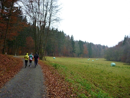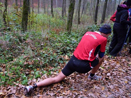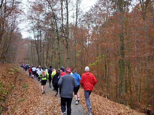 Der zweimal zu durchlaufende Rundkurs hat die Form einer zerknitterten Acht. Von Zeil und den Weinbergen sind wir weit entfernt, das rostig-braune Laub der Buchen und Eichen des Bichofsheimer Forstes begleitet uns für die nächsten Stunden.