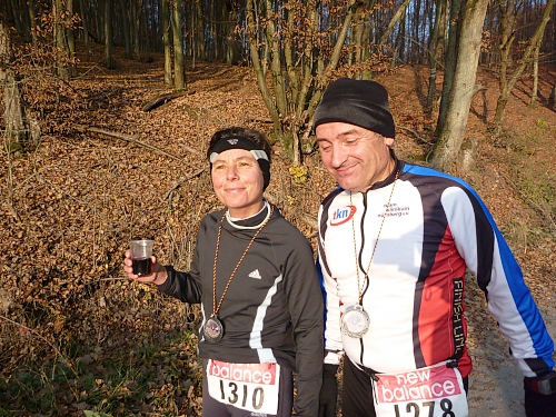 Nebenan im Rudolf-Winkler Haus gibt´s den Finisherwein. Die Gesamtsieger bekommen einen roten Teufel aus Kupfer, beneidenswert. Gratulation für Ewald, der seinen 300ten gefinisht hat! Gute Besserung an Roland, der die Ruhr hatte und den wir dehydriert in der Umkleidekabine zurücklassen.