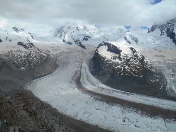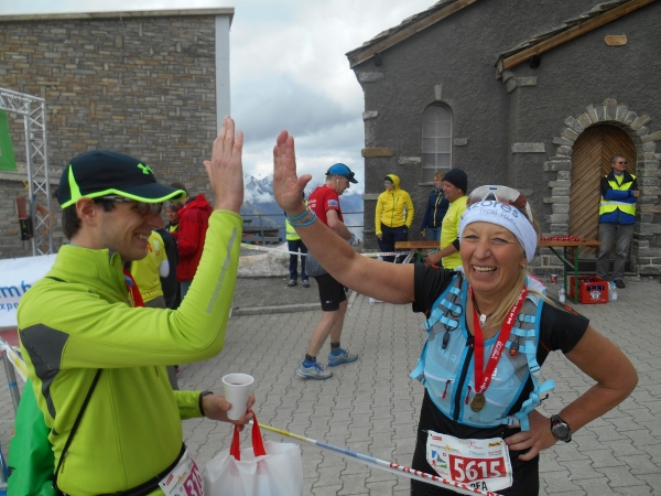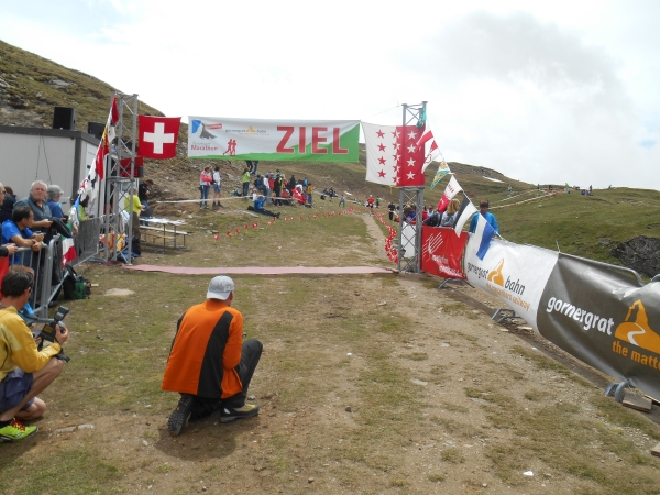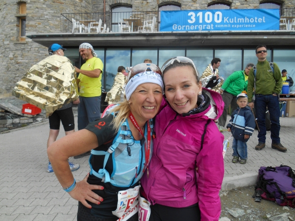 Die Siegerin des Halbmarathon hat gerade einmal 2h für die Strecke gebraucht und kommt aus der finnischen Stadt Oulu. Ja genau, dort wo Christian und ich vor kurzem noch Letzte beim Marathon wurden. Ohne Shirt aber mit Kuchen im Gepäck machen wir uns gleich auf dem Weg zur Gornergratbahn, um meine Mama bei ihrem Zieleinlauf sehen zu können. Der Blick vom Gornergrat soll die Ultras „für ihre Mühen entschädigen“, so der Veranstalter. Der Ausblick ist wirklich gigantisch. Und wenn ich sehe, wie frisch meine Mama im Ziel aussieht, dann frage ich mich, ob es für sie überhaupt mühsam war, hier hinaufzugelangen. Ich bin stolz auf sie und freue mich, wieder einmal mit ihr im (fast) gleichen Rennen gelaufen zu sein.