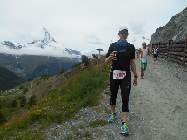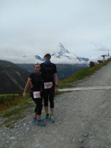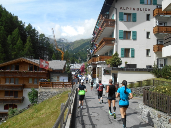 Noch bevor Christian und ich Zermatt erreichen, haben wir einen Reisemarathon hinter uns: Wir verließen Berlin am Donnerstag und erreichten Frankfurt spät abends nach einer überfüllten und sehr langen Zugfahrt. Nach einer viel zu kurzen Nacht in Frankfurt fahren wir am nächsten Morgen mit dem Auto Richtung Zermatt. Ich bin froh, dass ich nicht die 600km laufen muss und auch dass meine Mama das Auto fährt. Als wir St. Niklaus erreichen, hat gerade die Startnummernausgabe geöffnet und wir können unsere Beutel, Nummern und Memorabilien gleich abholen. Von St. Niklaus fahren wir weiter nach Täsch, stellen unser Auto für gar nicht mal unverschämte 8 Euro pro Tag in ein Parkhaus und nehmen dann den Zug nach Zermatt. Vom Bahnhof in Zermatt ist es zum Glück wirklich nicht mehr weit bis in unser Hotel, wo wir auch gleich ins Bett fallen.