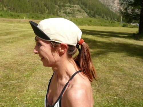 In Randa gibt es dann wieder, von mir sehnlichst erwartet, Wasser und Iso, wer Festnahrung braucht bekommt Bananen und Riegel und auch für die Gel Schlürfer ist gesorgt. Im Schatten bei einer Brause wartet Patric auf mich. Beim Brunnen kühle ich noch den Kopf herunter, tränke meinen Sonnenhut mit erfrischendem Wasser und nehme dann zusammen mit Patric den nächsten Abschnitt in Angriff. Meine Beine erreichen erst jetzt ihre Betriebstemperatur und die gewünschte Geschmeidigkeit, endlich ist die Hypothek meiner jüngsten Lauf-Historie aus ihnen geschüttelt.