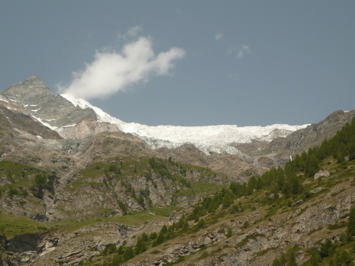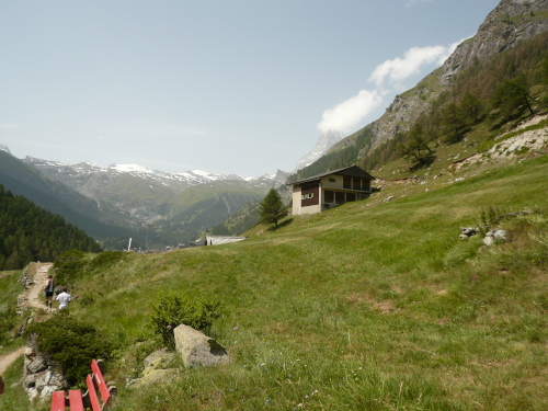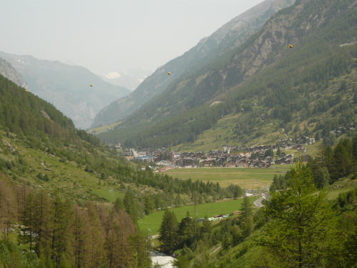 Bis Täsch sind nicht so viele Höhenmeter zu überwinden, zudem gibt es immer wieder einen Brunnen am Wegrand, wo ich mir etwas Abkühlung besorgen kann. Interessanterweise kommt mir die Strecke trotz der erschwerenden Bedingungen durch das allzu gute Wetter kürzer vor als vor meinem inneren Auge gespeichert.