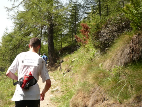 Wir machen ab, dass Patric vorangeht und sich meldet, wenn er meine Unterstützung braucht. Dass dem so wäre, ist nicht zu erkennen. Mir wird fast schwindlig beim Zusehen. Wie wenn er in letzter Zeit nichts anderes gemacht hätte, erklimmt er Stein um Stein. Vom Tempo her ist kein Unterschied zu den Läufern vor und hinter uns zu spüren. Mich beschleicht ein mulmiges Gefühl. Übernimmt er sich? Gehen die Pferde mit ihm durch? Er scheint derart im Flow zu sein, dass ich ihn nicht bremsen möchte, obwohl das eher meinem Wohlfühltempo entsprechen würde.