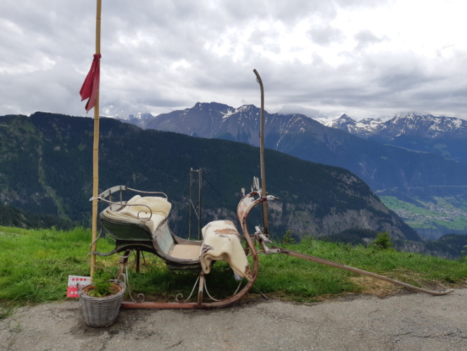 Als Nachbereitung für die Muskeln steht am Sonntag eine kleine Bergwanderung mit meiner Frau an. 500 Höhenmeter oberhalb unseres Chalets (wir nehmen die Seilbahn) gibt es einen schönen Panoramaweg (mit Straßenbeleuchtung!), von dem man bei schönem Wetter neben dem Simplonpass, über den der Gondo-Marathon führt, auch das Matterhorn sehen kann.