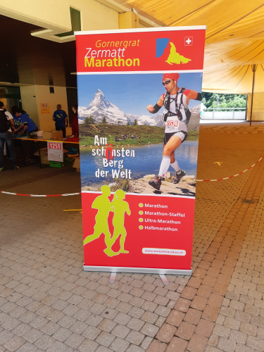 In St. Niklaus ist es ebenfalls ruhig. Zwar weisen uns schön gestaltete Plakate den Weg zur Regionalschule, in der die Startnummernausgabe ihren Platz gefunden hat. Aber auf die Atmosphäre einer Pasta-Party müssen wir pandemiebedingt verzichten. So finden sich immer nur vereinzelt Läufer zur Abholung ihrer Startnummer (rot für Ultra, blau für Marathon und grün für Staffel) ein.