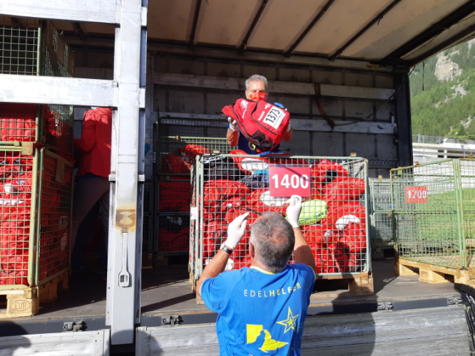 Doch so weit sind wir noch nicht, am Bahnhof in St. Niklaus entsteigen jetzt die Läufer den regelmäßig eintreffenden Zügen aus Zermatt und Brig. Für Teilnehmer ist die Fahrt zwischen Brig und Zermatt und weiter aufs Gornergrat für das ganze Wochenende kostenfrei – der Normaltarif für eine Fahrt hin- und zurück beträgt alleine ca. 160 CHF, also mehr als der Teilnehmerbetrag für den Ultramarathon von 155 CHF. Daher kommt kaum jemand mit dem Auto, auch ich habe mein Fahrzeug am Bahnhof in Brig abgestellt. Wer noch keine Startnummer abgeholt hat, kann dies jetzt nachholen, alle anderen wenden sich gleich zum Check-In. Hier müssen wir nachweisen, entweder gesundet, frisch getestet oder geimpft zu sein. Ich kann letzteres auf meiner App nachweisen, die vom Check-In Personal gescannt und für in Ordnung befunden wird.
