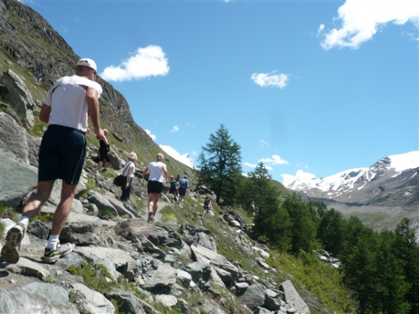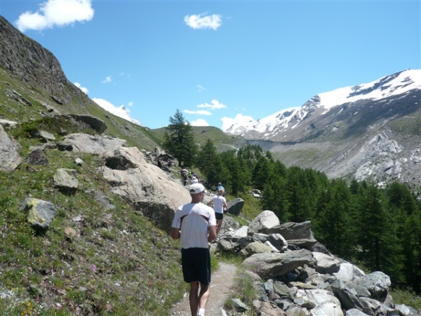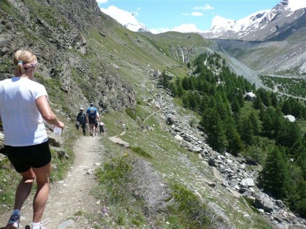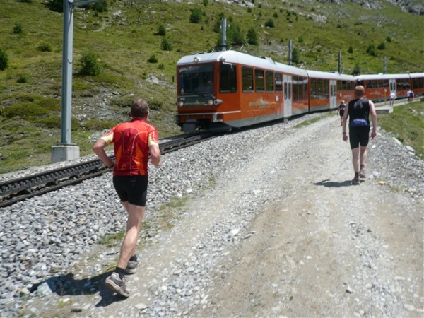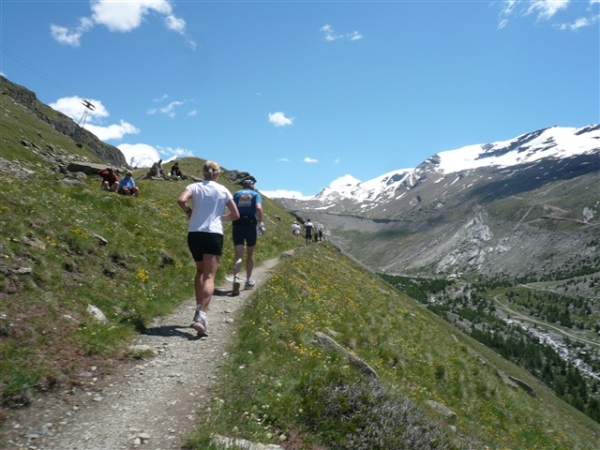 Ein letzter Gedanke noch zu einem evtl. Zermatt-Halbmarathon, den manche wohl gerne hätten. Angesichts der angebotenen Zweierstaffel halte ich den für so überflüssig wie einen Kropf. Denn die Staffel teilt die Gesamtstrecke in zwei gleich lange, aber stark unterschiedlich schwere Hälften, sodaß auch unterschiedlich starke Läufer ein schönes gemeinsames Lauferlebnis haben und sogar gemeinsam ins Ziel einlaufen können. Also, worauf wartet Ihr noch?
