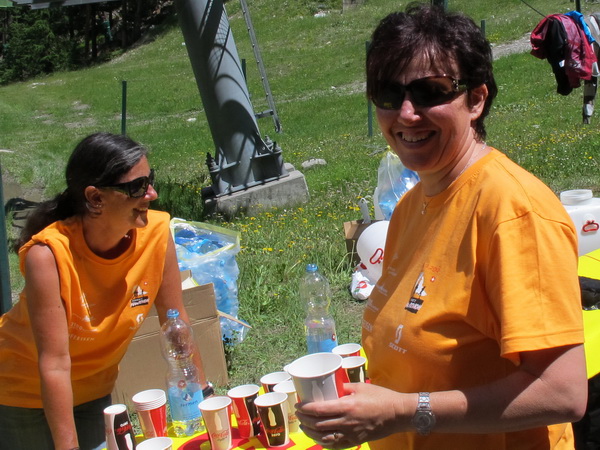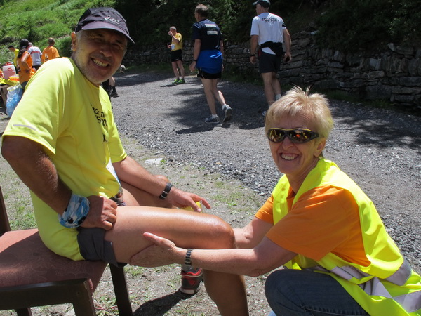 Los werde ich das lästige Ziehen nicht, bis wir die Verpflegungsstelle Patrullarve (2000 m – 28,8 km) erreichen. Dort kümmern sich gerade zwei Mädels hingebungsvoll um Werners Fahrgestell. Als ich mich im Stuhl daneben niederlasse, ist eine davon gleich bei mir. Ich brauche nur auf die Wade zeigen, schon geht’s los. „Aha, da haben wir’s“, glaubt sie fachkundig zu wissen. Dem Schmerz nach zu urteilen, liegt sie richtig. Auf mein wehleidiges „Jaaaa“ hin intensiviert sie ihre Behandlung und nach ein paar Minuten ist das Problem für den Rest des Tages behoben. Danke noch einmal von hier aus.