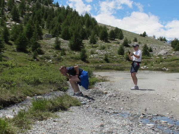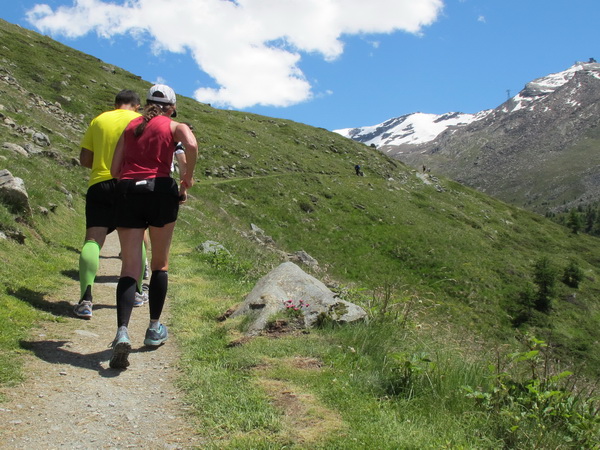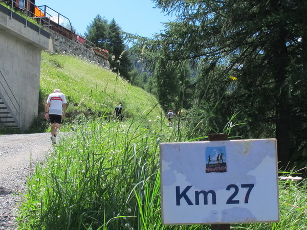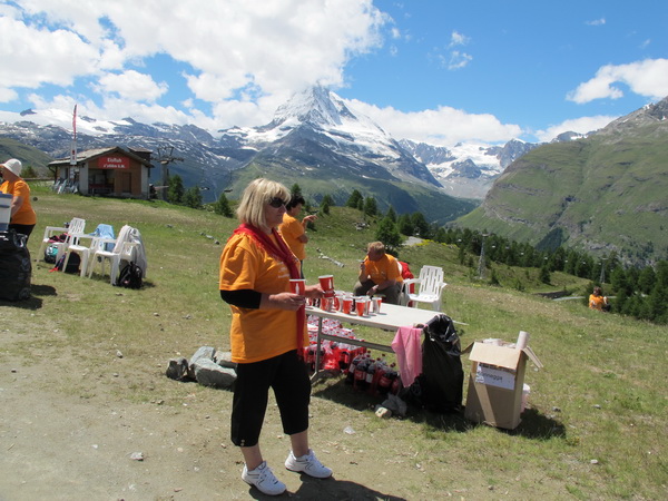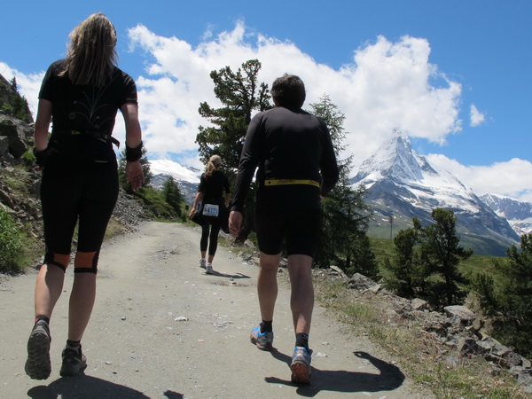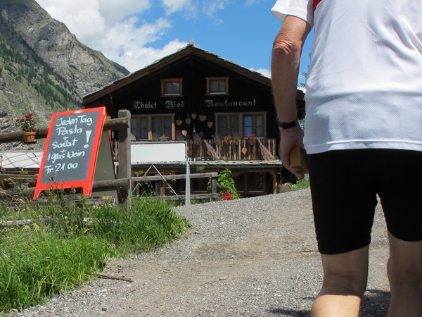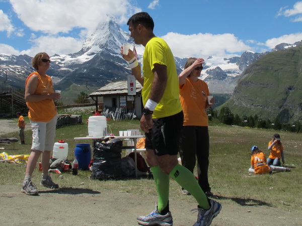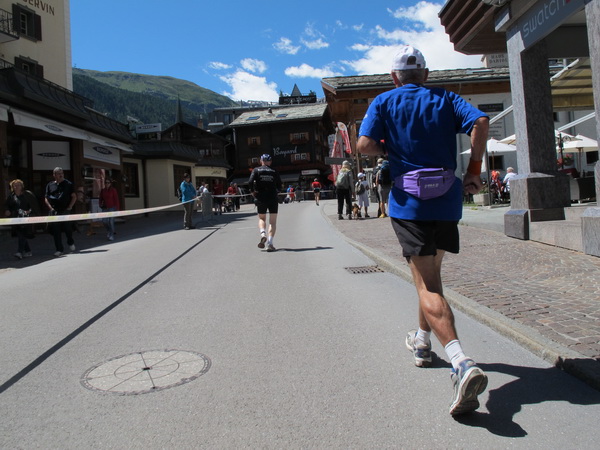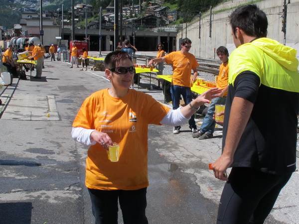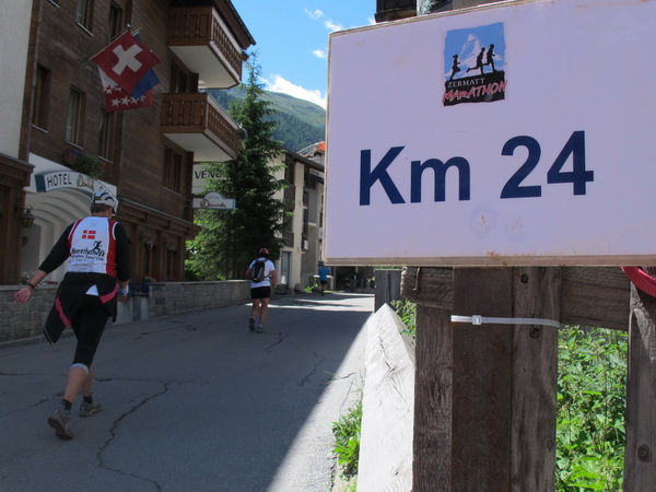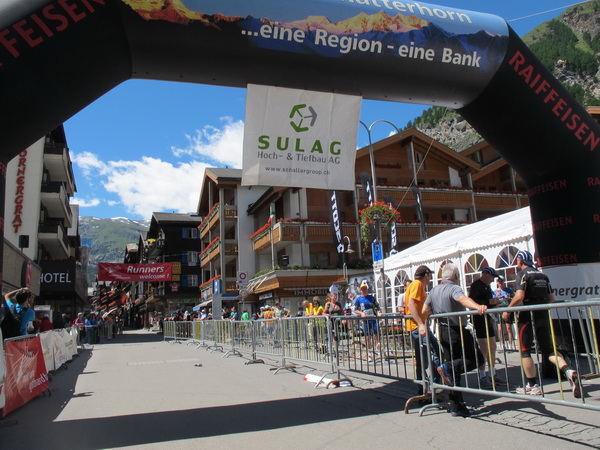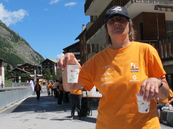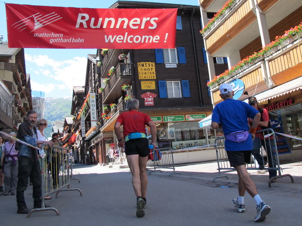 Um 12.20 Uhr muss man in Zermatt (1616 m – 21 km) sein, sonst wird man aus dem Rennen genommen. Ist man einigermaßen trainiert, sollten die 3:20 Stunden für die Halbdistanz kein Problem sein. Bevor es zum großen Schaulaufen durch die renommierte Bahnhofstraße kommt, kann man sich ausgiebig erfrischen und stärken.