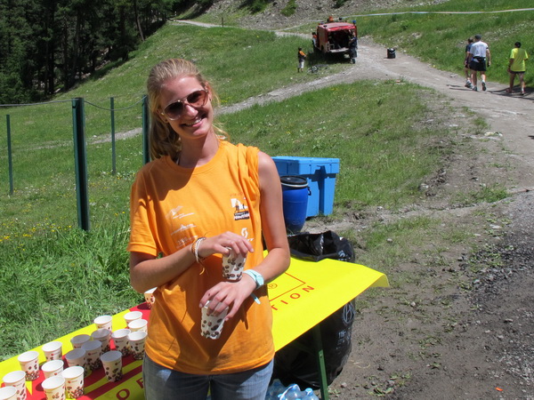 Auch die Verpflegungsstelle kommt wie gerufen. Nach genauem Plan, den jeder Teilnehmer kennt, gibt es Wasser, Tee, Iso, Tee, Cola, Bouillon, Riegel, Gel und Bananen (was vergessen?). Alles in rauen Mengen. Besser wird man nirgendwo versorgt. Und freundlicher auch nicht.